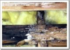 熱橋(断熱されていない部分)による壁内結露となった水分は、下方へと移動し、1階の土台や