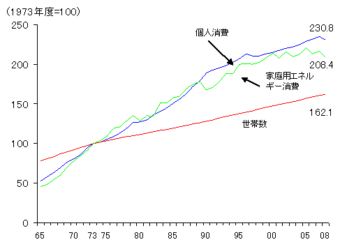 利便性を求める生活様式や家電製品の多様化や主にエアコンの普及などにより、1970年当時と